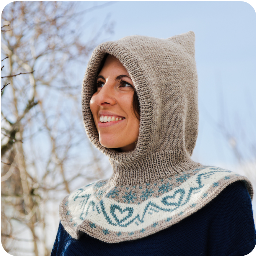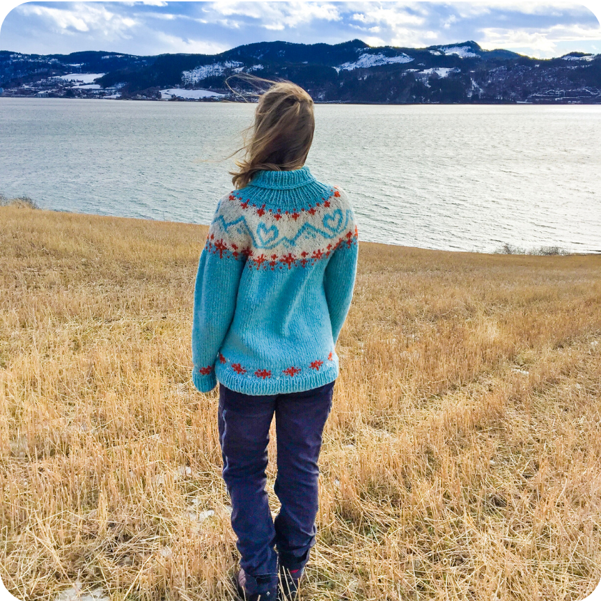 Strikk varmende plagg i et morsomt fjellmønster. Nå kan både to og firbeinte matche hverandre :)